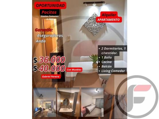 El apartamento se puede alquilar con muebles $36000 o con muebles $40000.