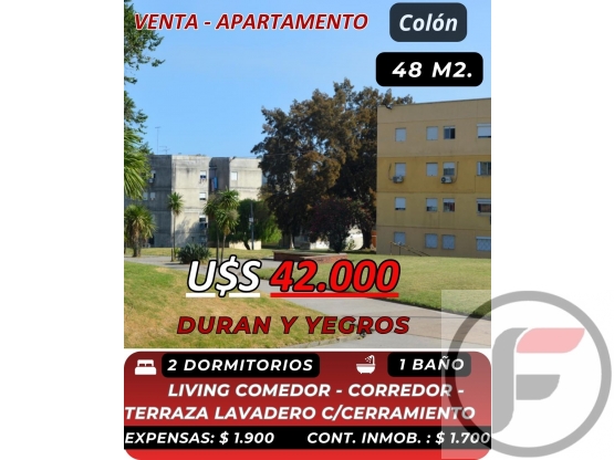 Excelente oportunidad para invertir en COMPLEJO AMERICA. Muy cerca del centro de Colón y con todos los servicios a metros (Comercios, transporte público, colegios y liceos). Segundo piso por escalera.