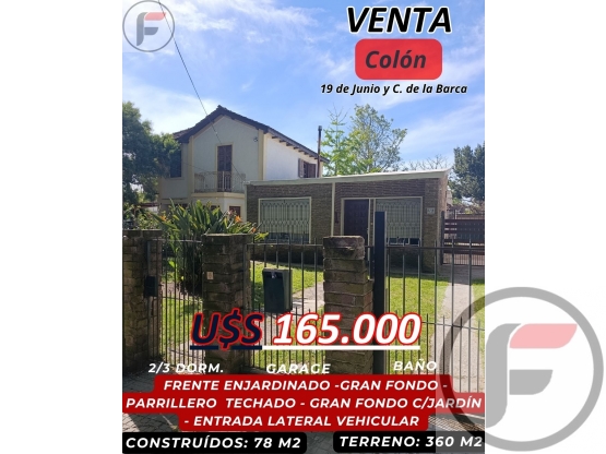 En el corazón de Colón donde la naturaleza y la ciudad generan un espacio vital disfrutable. A metros del Parque Giot (de la Francesa) y de Plaza Colón. Próxima al centro comercial de la zona y todos los servicios. Escuelas, liceos, kinder, hospital, sanatorio, policlínicas, transporte público. La casa se enclava sobre la calle 19 de junio (una de las mas lindas de Colón y Villa Colón), muy tranquila y cerca de todo el movimiento ciudadano. Vestida con una hermosa arboleda.