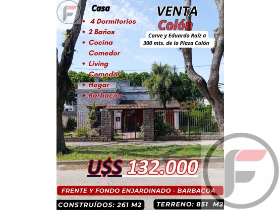 No te podes perder la OPORTUNIDAD. Construcción antigua y sólida. Precisa que se le realicen reparaciones. Sobre la calle Carve en esquina con Eduardo Raíz, a 300 mts. de Plaza Colón y 200 de Av. Garzón. Todos los servicios, liceos, escuelas, comercios y transporte público a pocos metros.