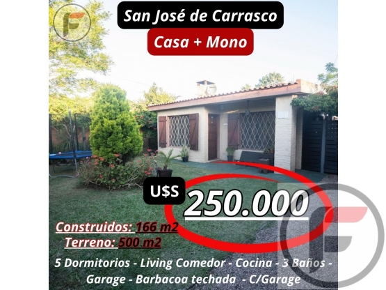 Casa + Monoambiente 5 Dormitorios 3 Baños Garage Parrillero San Jose de Carrasco