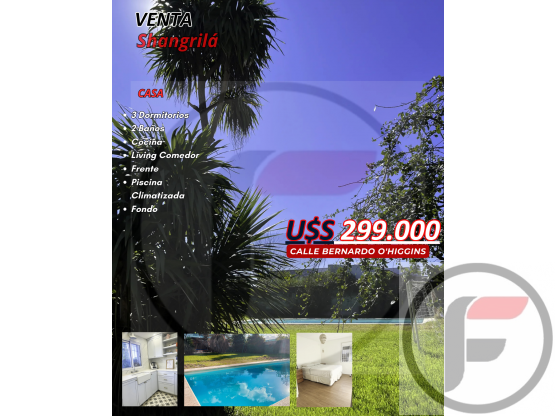 Espectacular Casa En Shangrilá, 3 Dorm, 2 Baños y Piscina