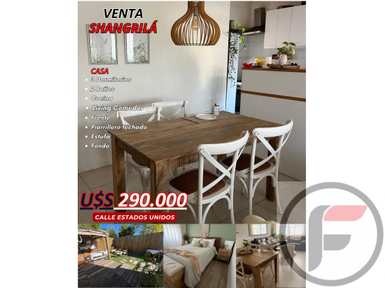 ESPECTACULAR CASA SHANGRILÁ SUR. 3 DORM. 2 BAÑOS