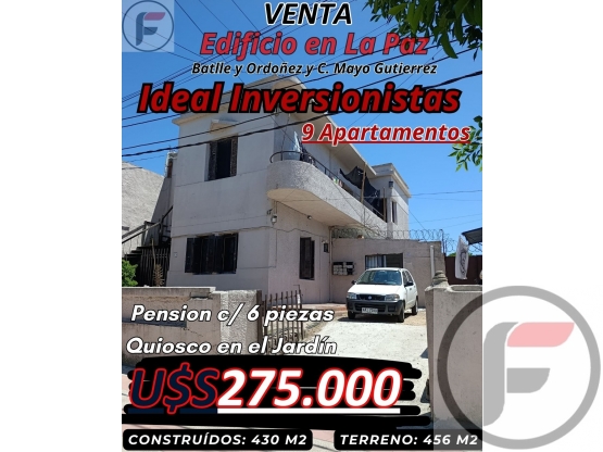 Oportunidad inversores!!!! Edificio en pleno centro de La Paz. 9 apartamentos y 6 piezas que funcionan como Pensión. Además tiene un quiosco que se alquila en el jardín. Enclavado en el mejor lugar de la ciudad, todos los comercios y servicios a metros. Transporte público en la puerta.